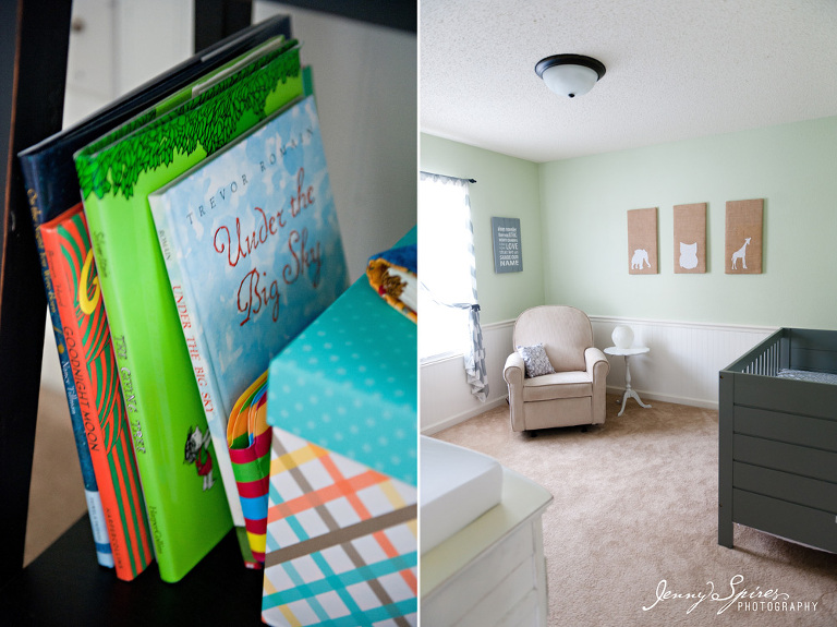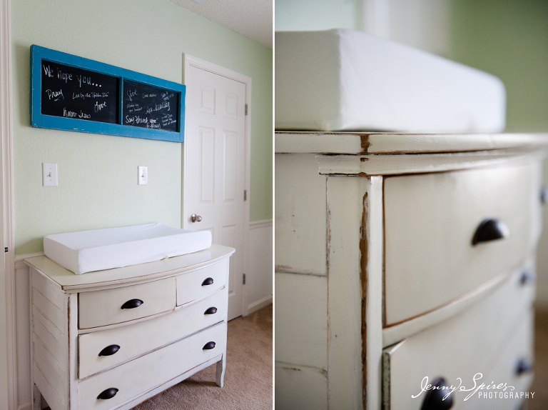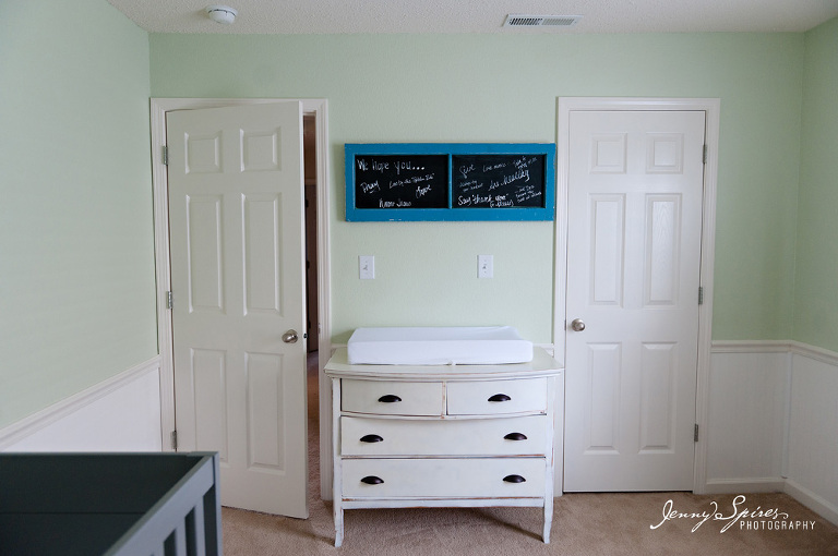 And let’s talk about this sweet nursery! I was in love the moment I walked in. Laura and Eric’s DIY nursery was full of sweet touches and soft grey’s and mint greens.