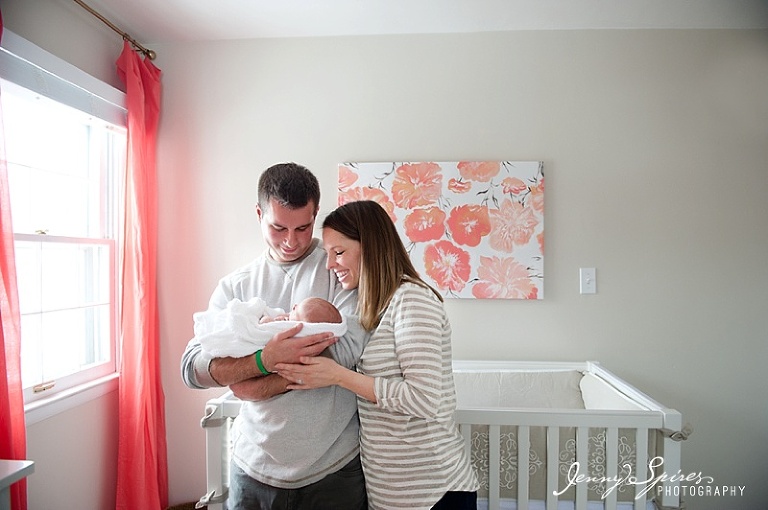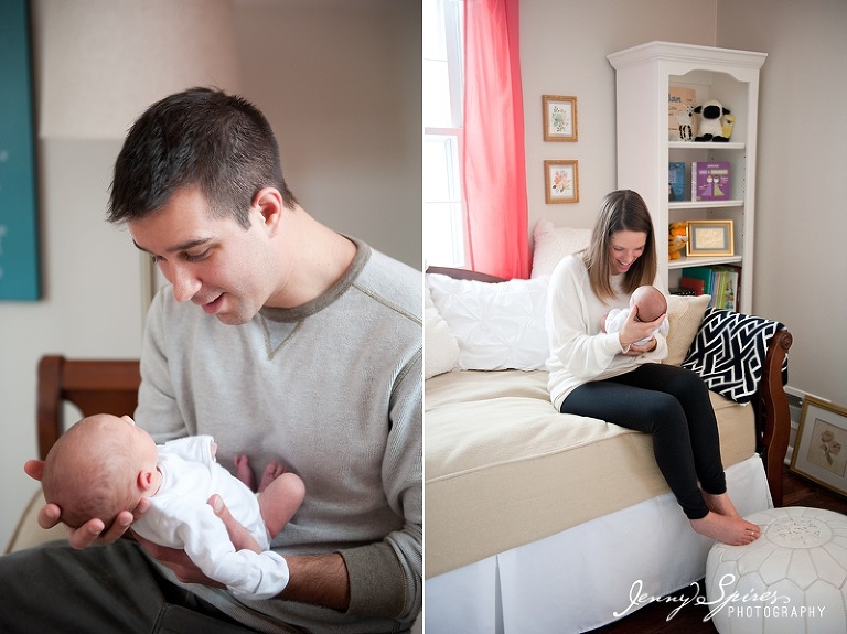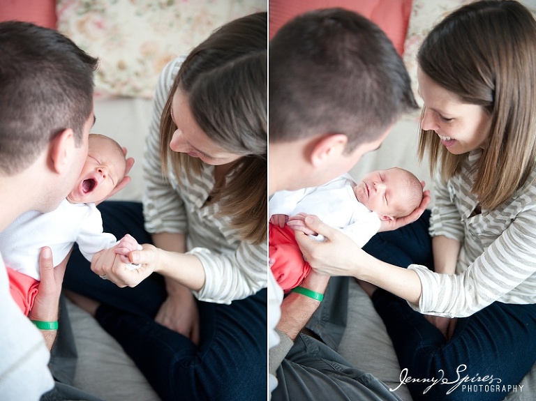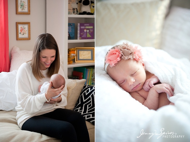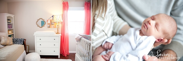 Maybe it was her incredible nursery (um, can I decorate my house in coral please?). Maybe it was her name (Cora was definitely on our short list for both babies. I adore it). Maybe it was how relaxed her mama and daddy were (ummm…newsflash, you guys JUST had a baby and you could not be more laid back and easy going! Just pretend like you’re more tired than I am, please??). Maybe all of these reasons are why this was one of my favorite newborn sessions.