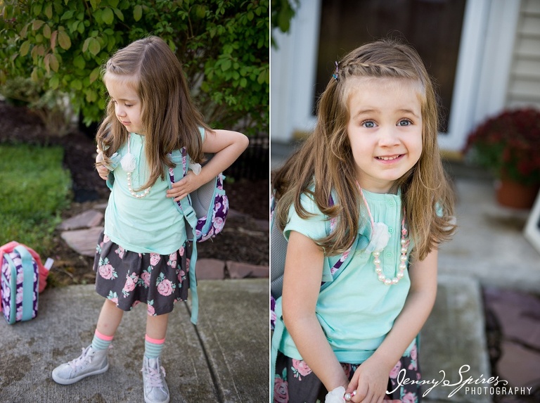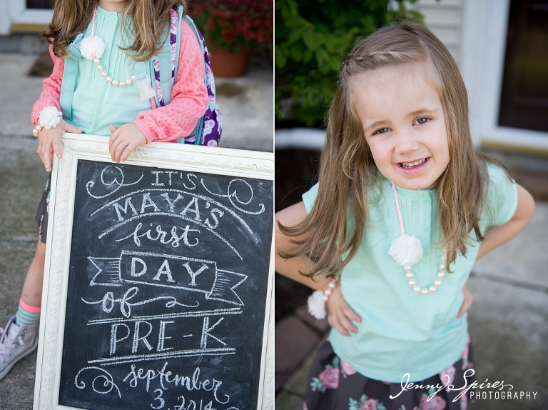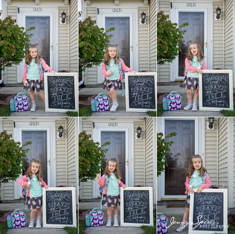 I decided to do the same kind of idea as last year with her first day of school sign standing by the front door. To see last years first day of school blog post, click here. I love how similar everything was and how I can see how much she’s grown.