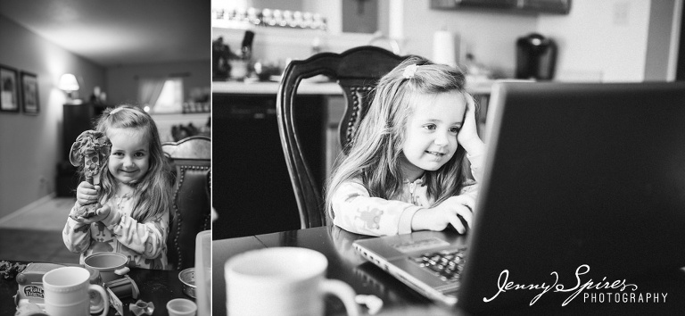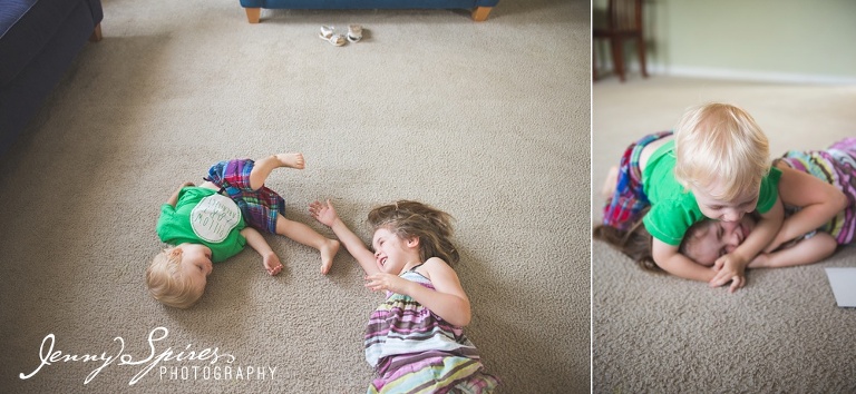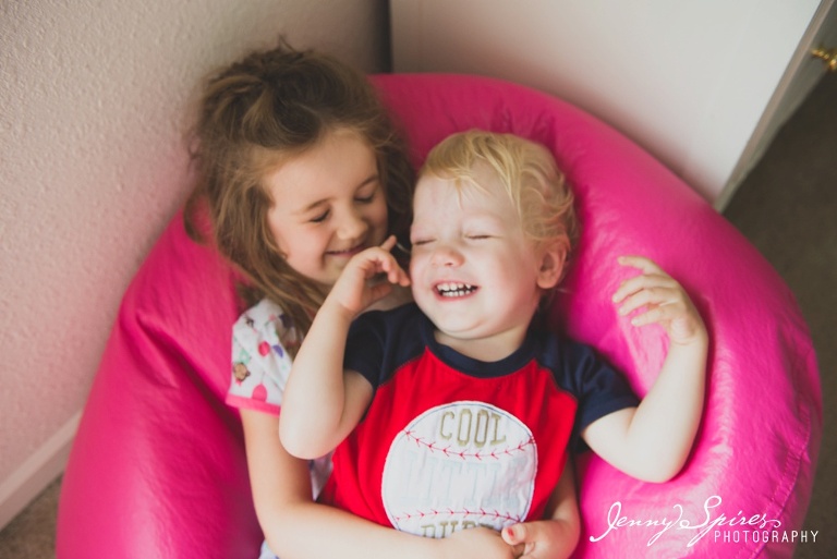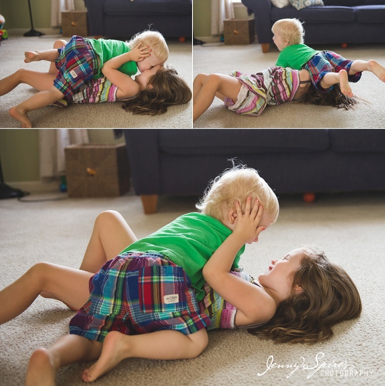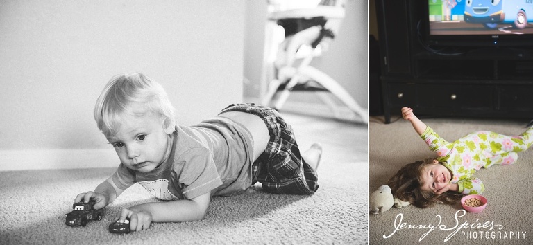 These are photos of my kids on a very ordinary day. They are still in their pajamas and their hair is reckless and abandoned, because that’s how we roll most days that we don’t get out of the house. You’ll see colored-on toys on my floor and my stain-spotted carpet. The tv is on and I’ve let my daughter play on the computer a bit too long. I LOVE these imperfect photos that I took last June because it shows my kids exactly as they are and they’ll help me to remember them that way. But until now, sharing these were not in my plan.