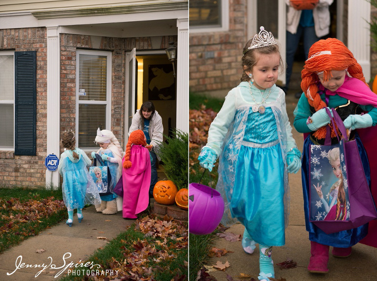 This year, we had our friends, the Helvey’s, over to our house for Trick or Treating, some white chicken chili and hot chocolate. And it was down-right cold. So much so, I really contemplated not even going out, but I knew the kids would be crushed. We had to send our little Frozen gang out to join the parade of all the other Frozen kids roaming the streets. Literally, frozen.