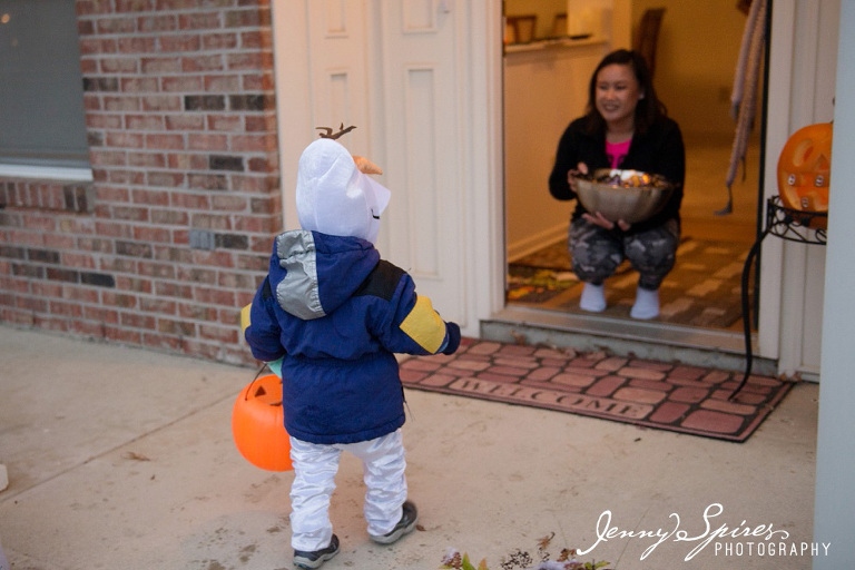 Bless his heart, why on earth did I not get the boy a pair of gloves? I’m still learning that Indiana Halloween’s are not the warm evenings that they were in Arizona. I’ve got to prepare a little better!!!